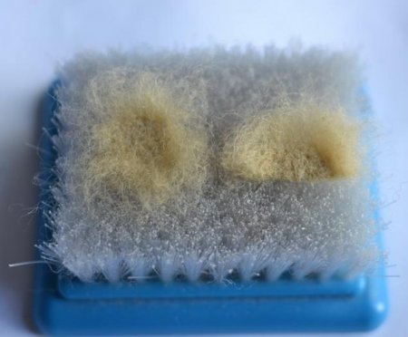 Помните, что, сваливаясь, шерсть дает «усадку», поэтому объём исходного материала должен быть в три раза больше, чем желаемый объём игрушки. К примеру, на игрушку-котенка ушло 50 грамм шерсти. Особое внимание стоит уделить иглам: хорошими и качественными считаются иголки производства Германии, Японии и США.