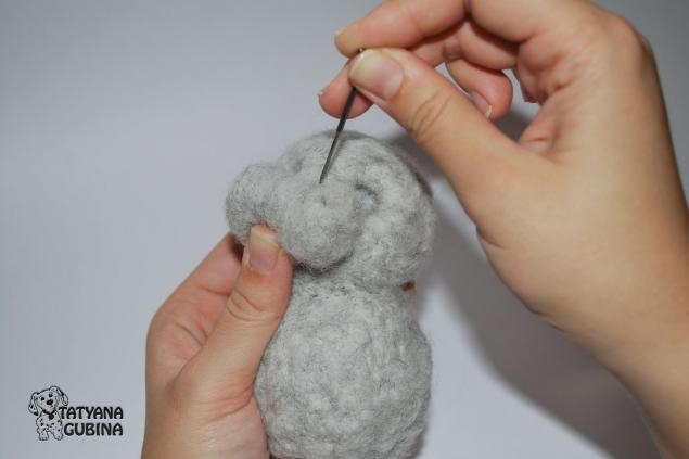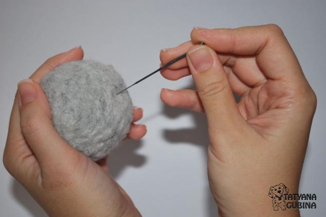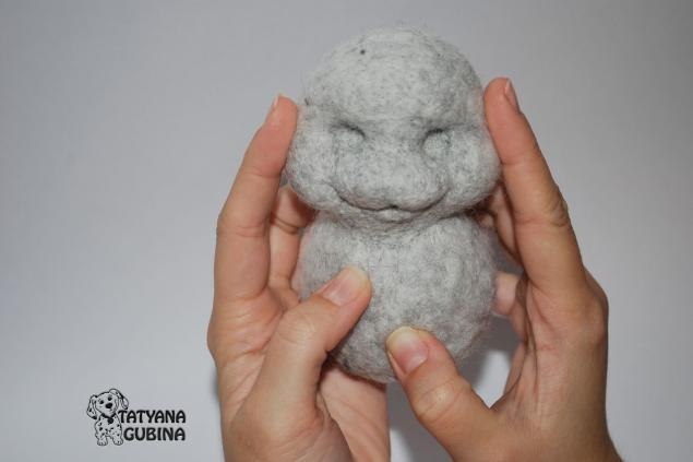 На начальных этапах работы иголку втыкать нужно довольно глубоко, чтобы хорошо свалять сердцевину игрушки. Пока шесть достаточно мягкая, материалу можно придать необходимую форму пальцами. Деталь считается готовой, когда она приобретает ощутимую плотность. Внутри не должно быть пустот, игрушка не должна деформироваться при нажатии.