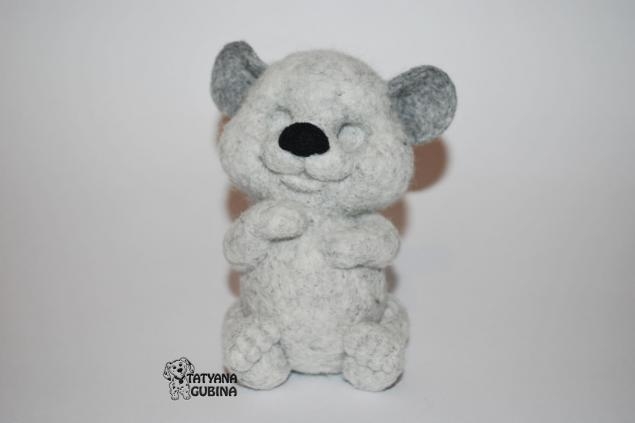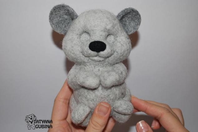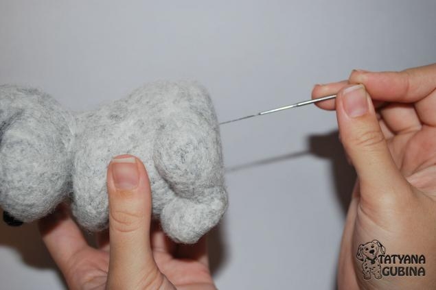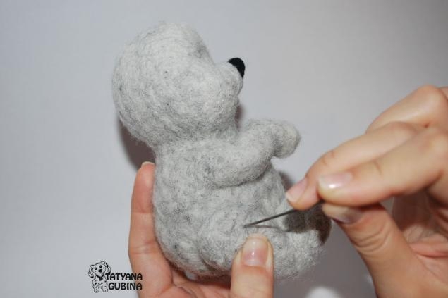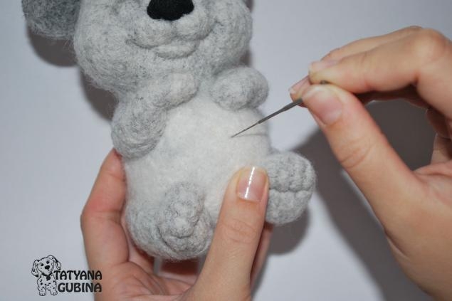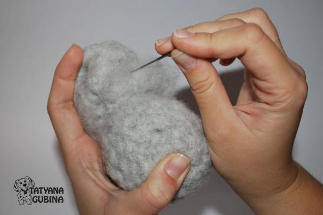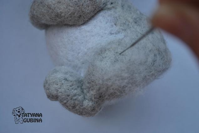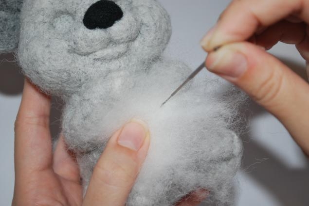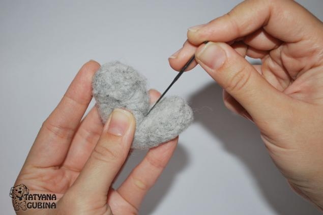 Голова и туловище или другие крупные детали обычно сваливаются вместе, а вот мелкие элементы (носик, лапы, хвост, уши) нужно изготавливать отдельно. Если планируется в дальнейшем соединять детали, следует оставить свободные волокна шерсти в местах соединения. Чтобы надежно соединить части игрушки, свободные концы нужно хорошо привалять к основе.