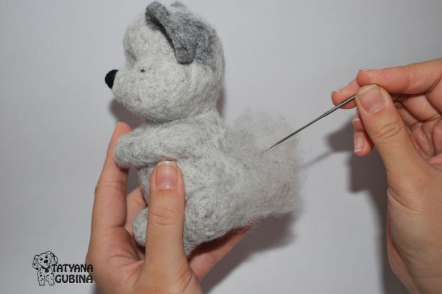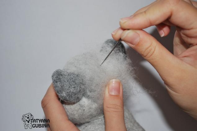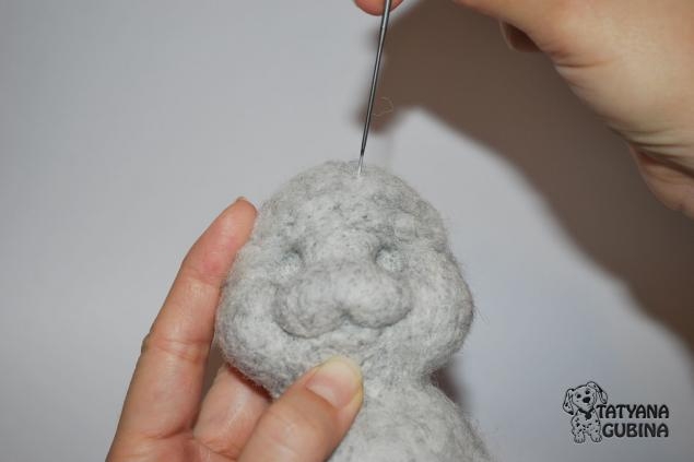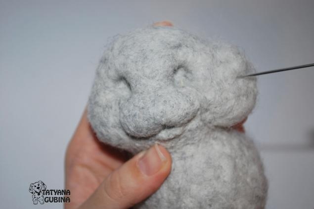 Загоняем шерсть в нужные места, следим, чтобы носик получался ровным.