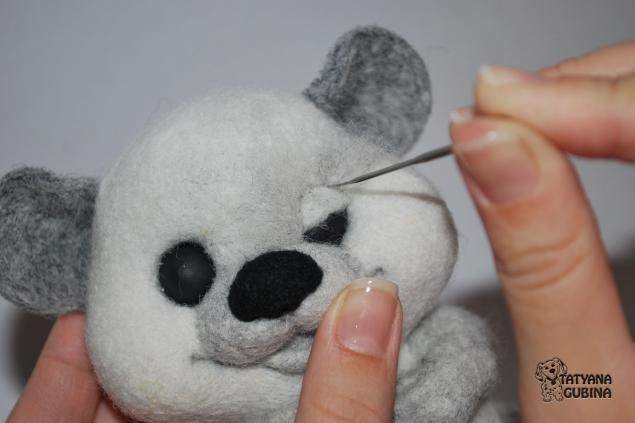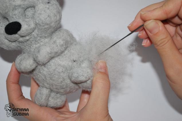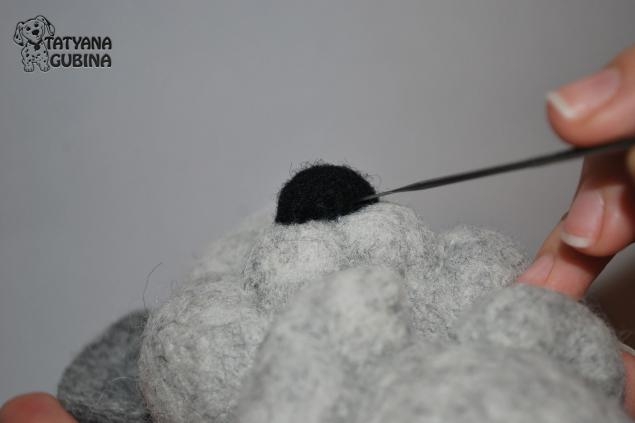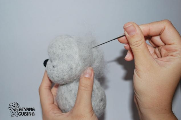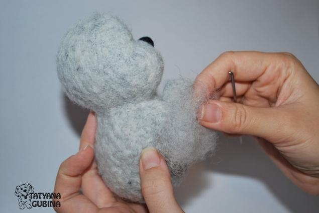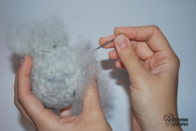 5. Берем небольшое количество шерсти для мордочки и приваливаем её к голове.