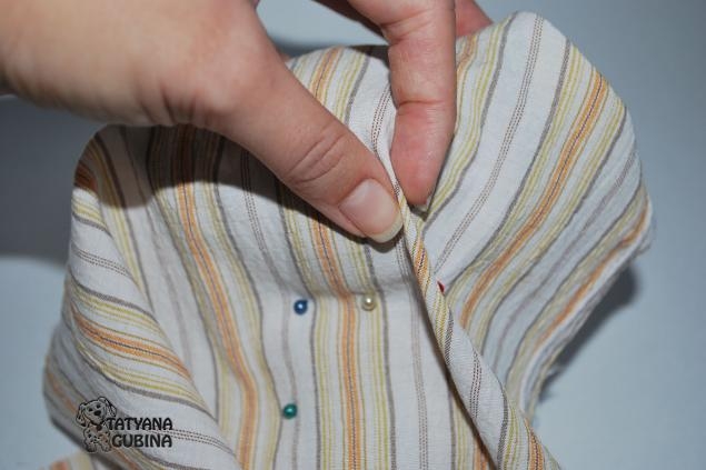 Вид сбоку. Померили- прошиваем вытачки. Получились они по краям головы.