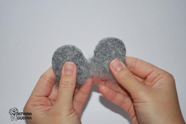 10. На губке сваливаем ушки и приваливаем к головке. По краям ушек нужно пройтись иглой № 38.