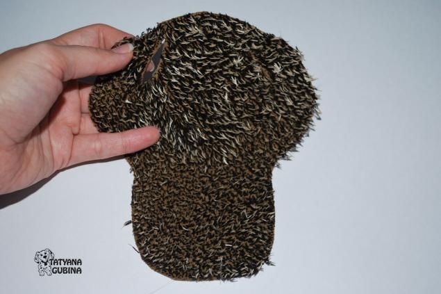 12. Вырезаем ткань меховую по выкройке и пришиваем к ёжику.