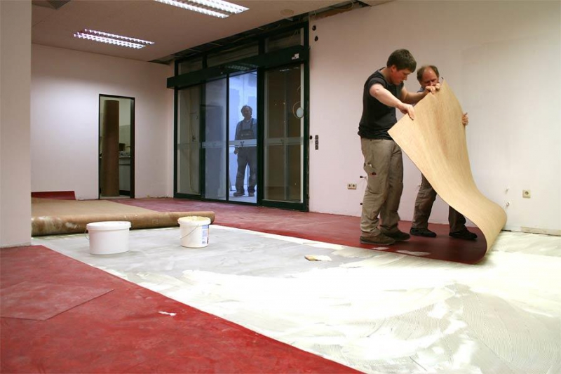 Укладка линолеума с основой на бетонный пол с использованием клея