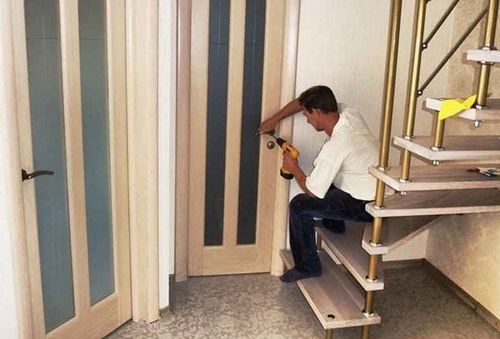 - Если снять дверь нет возможности, ее полностью открывают, нижнюю часть надежно фиксируют. Но такой способ скорее подойдет для стандартных шпоновых моделей, вставки в которых закреплены четвертями.