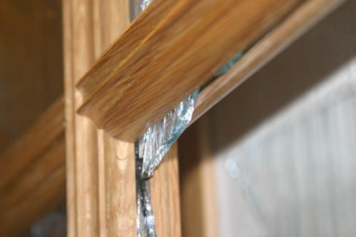 Даже если речь идет о закаленном варианте, то есть, рассыпающемся на неострые осколки, лучше надеть плотные перчатки. Если вставка была из обыкновенного стекла, то это обязательно.