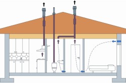 • Поступление воздуха в дом. Когда в строительстве использовались преимущественно деревянные окна с множество щелей, этот вопрос не был актуален. Но сегодня, с появлением пластиковых окон, воздух практически не проникает в помещение и это существенно снижает эффективность системы.