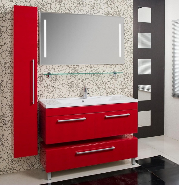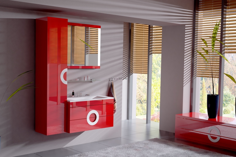 - Красная мебель для ванной – тоже не продукция массового производства и с большой вероятностью ее придется делать на заказ. Дорого, но результативно – у вас будет эксклюзивная обстановка.
