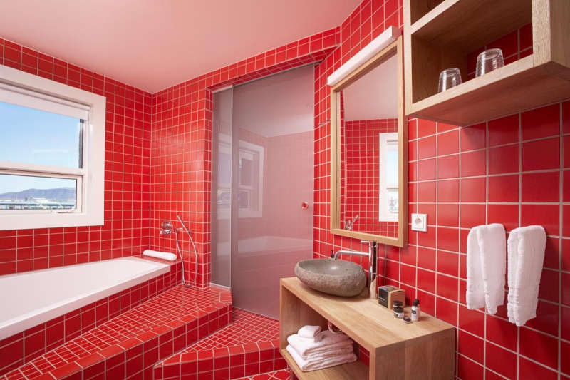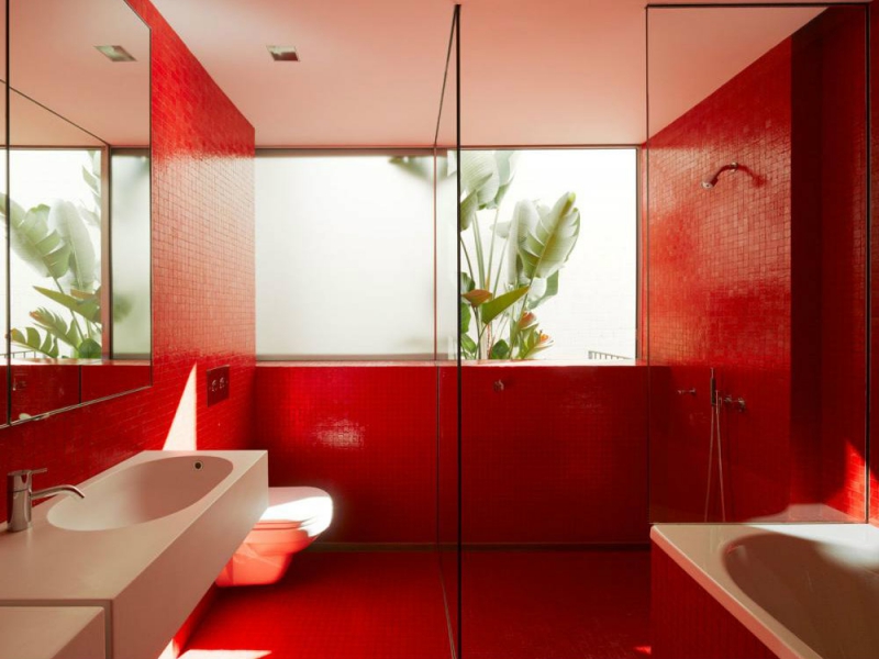 Удивительная красная ванная комната: чудесные сочетания с другими оттенками