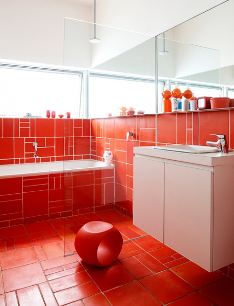 Подробно плитка красного цвета была рассмотрена в другой нашей заметке. Читайте и выдумывайте собственные необычные решения дизайнеров!