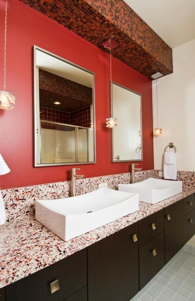 Еще более 230 фото-идей дизайнерского оформления ванной комнаты – в различных цветах, в том числе и в красных тонах.