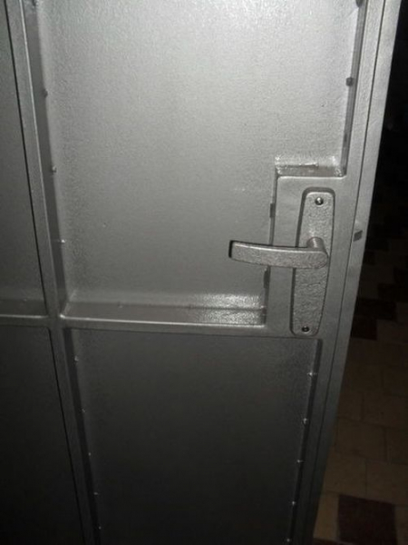 - Для доступа к замковому устройству на внутренней стороне полотна оборудуется окно, открыть которое можно только с помощью специальных инструментов.