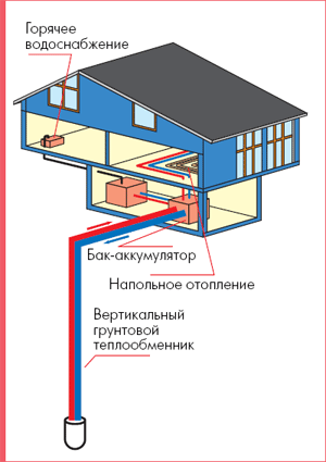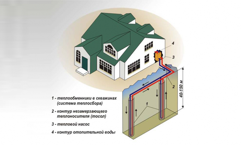 Геотермальное оборудование для глубинной отопительной системы позволяет аккумулировать извлеченную из окружающей среды тепловую энергию и передавать ее теплоносителю в отопительном контуре.
