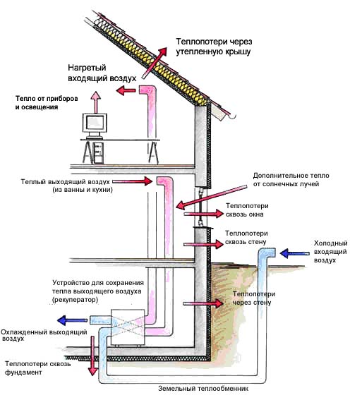 Схема работы приточно-вытяжной вентиляции пассивного дома.