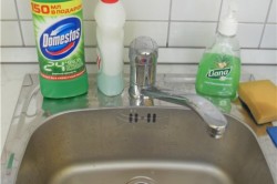 Самостоятельную борьбу с неприятностями начните с наблюдения за раковиной. Если вода уходит нормально, но неприятный запах из слива есть, попытайтесь уменьшить поток отходов, которые попадают в раковину. Чем интенсивнее пополняются запасы мусора в трубах, тем сильнее запах. Промойте трубы горячей водой с дезинфицирующим средством.