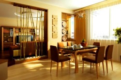 Для разделения пространства может быть использована ширма (рис. 4). Она позволит превратить 1 большое помещение в 2 за считаные секунды. Еще для этих целей может быть использована веревочная штора (кисея). Она мягко отделит яркое кухонное помещение от зоны гостиной. Небольшие комнатные растения могут стать живой изгородью между 2-мя помещениями.