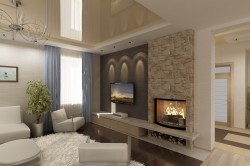 - Остается свободное место для зоны отдыха: дивана, телевизора или камина.