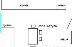 Пример планировки кухни – гостиной в узком помещении 13 м² – Три функциональных зоны в одном маленьком помещении – я подробно расскажу о собственном опыте решения этой непростой задачи, на примере планировки кухни-гостиной в узком помещении 13 кв.м.