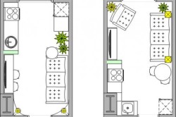 Минусы: Этот вариант планировки самый неудобный, так как нарушает правило «рабочего треугольника».