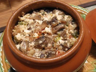 4. Накрываем горшочки крышками и отправляем в духовку. Запекаем перловку с грибами при температуре 200-220 градусов до закипания, затем убавляем огонь до 180 градусов и оставляем на 60-80 минут. Перловка должна стать мягкой и впитать в себя всю жидкость.