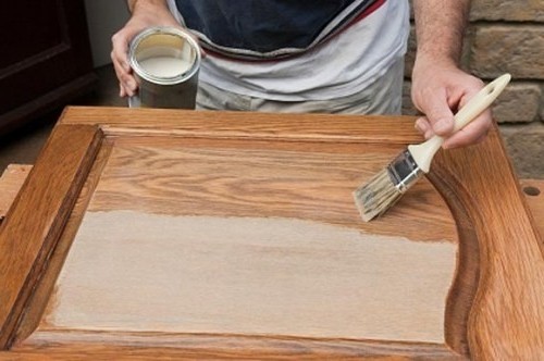 После того как дверь будет отшлифована, ее нужно пропылесосить, обезжирить с помощью уайт-спирита. Затем нужно взять грунтовку и после перемешивания нанести тонким слоем на полотно. Грунтование позволит продлить срок эксплуатации древесины, а также послужит основанием для нанесения нового слоя краски. В среднем на квадратный метр изделия уходит 100 грамм грунтовки. Подойдет грунт для реставрирования с меловой основой, а для вскрытия лака при самостоятельном выполнении работ используется разбавленный в дистиллированной воде ПВА-клей (в соотношении 1/1).