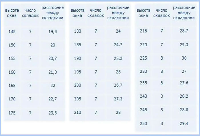 Так же, расчет необходимой длины отреза ткани производиться с учетом будущих складок. И в этом вопросе так же есть свои нюансы:
