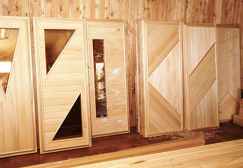Для парилки дверь желательно изготавливать из липы, ольхи или осины. Можно использовать и хвойные породы дерева, но тогда вам нужно будет обработать их поверхность, чтобы не выделялась смола.