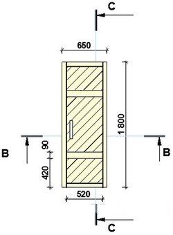 Например, толщина стандартной доски–сороковки после чистовой обработки уменьшается до 35 мм, ширина материала становится меньше на 10 мм за счет выравнивания плоскости. В итоге получается, что для того чтобы сделать своими руками деревянные двери в баню размерами 180х80 см, потребуется как минимум пять досок, шириной 160 мм, без учета размеров дверной коробки.