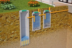 На практике такая система очистки стоков состоит из нескольких емкостей или отсеков.