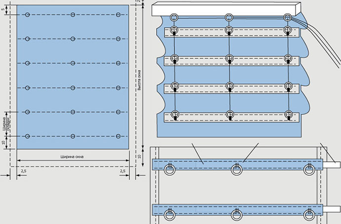 Способ кроя данной модели зависит от крепления: внутри оконного проема или на внешней стороне окна.