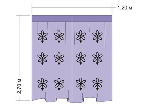 Крепление на петлях или прищепках «не съедает» лишних сантиметров полотна, в этом случае достаточно технологического припуска 2 см, чтобы загнуть и обработать края.