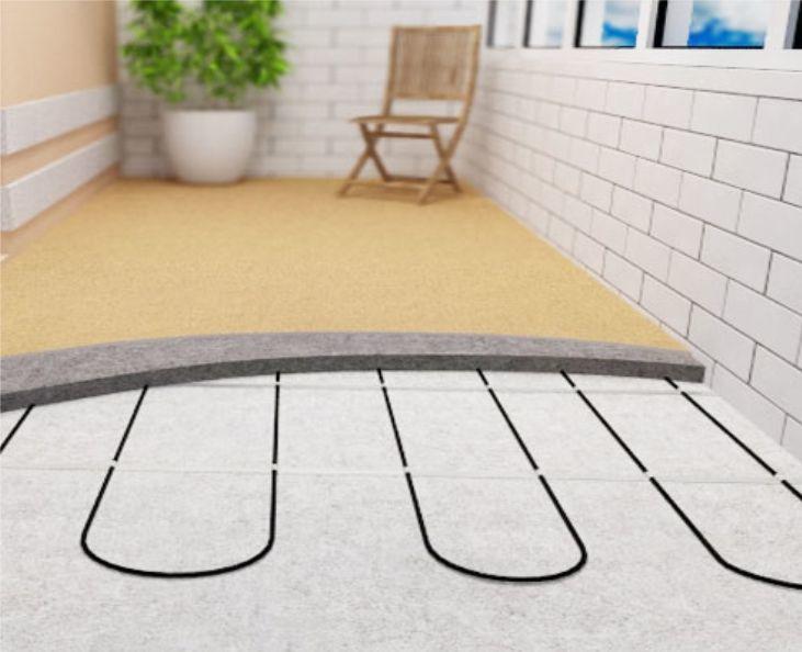 При необходимости (для ламинированной доски, например) между нагревающей поверхностью элементов теплого пола и финишным покрытием прокладывается подложка — но это делается достаточно редко: такая прокладка очень плохо проводит тепло.