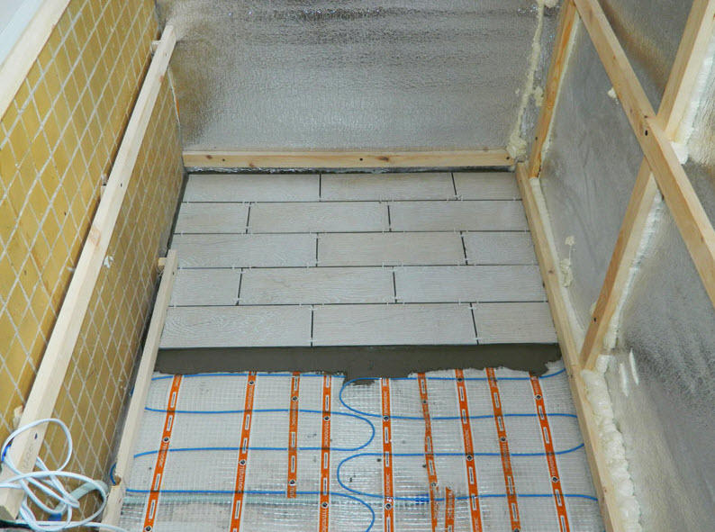 Кабельные маты под кафельной напольной плиткой.
