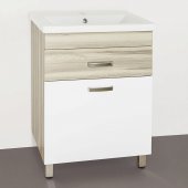 Тумба двухдверная с корзиной для белья и распашной дверцей. Размеры тумбы ШхГхВ (57х34х86 см) Размеры умывальника ШхГ (60х46 см)