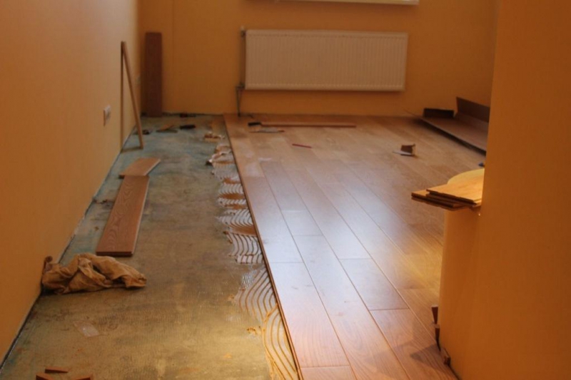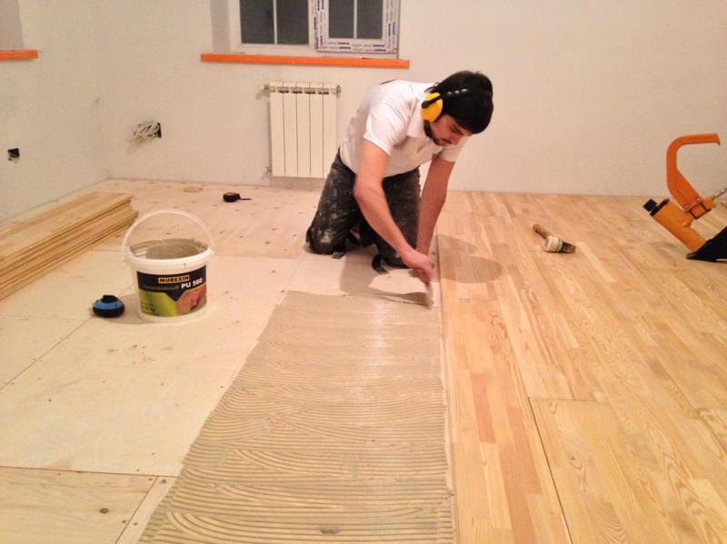 Укладка массивной доски на бетонную или цементно-песочную стяжку