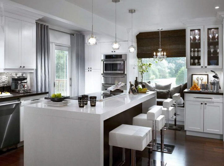 Столешница может продолжать барную стойку: практично и удобно, в лучших традициях модерна.