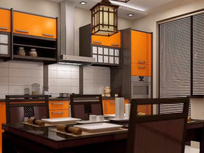 Не стоит забывать, что на кухне помимо штор есть и другие предметы, которые также должны подчеркивать и создавать модерн.