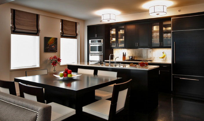 Что касается сочетания цветов в интерьере, присмотритесь к коричневой гамме: актуальны все оттенки от светло бежевого до шоколадного, не исключается и черная мебель.