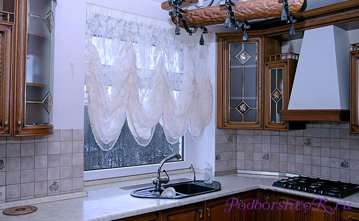 - Драпировка неуместна на кухне. Гостиная, спальня – но, ни в коем случае не кухонное помещение.