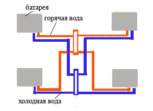 Такая система водяного обогрева широко используется в домах любой этажности. Её особенностью является подача воды к радиатору по одной трубе, а отвод – по другой. Происходит не последовательное, а параллельное подключение теплообменников к системе отопления.