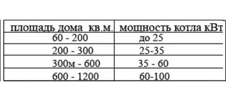 Изображение 2. Таблица подбора котловой мощности.