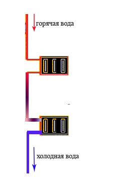 При распределении «шлейф» (схема представлена на ИЗОБРАЖЕНИИ 5) радиаторы, которые расположены ближе к производителю тепла, будут теплее.