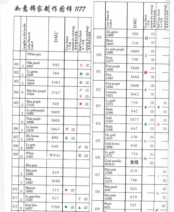 Расшифровку ключа в инструкции к этому набору вышивки китайского производства сделала красным шрифтом.