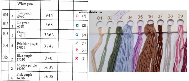Китайские производители взяли оригинальную схему и ключ к ней, но, видимо, никто из тех, кто набор готовил и упаковывал, в руках никогда не держал настоящих Dimensions. И потому внесли существенную путаницу, которая может негативно сказаться на внешнем виде готовой вышивки.