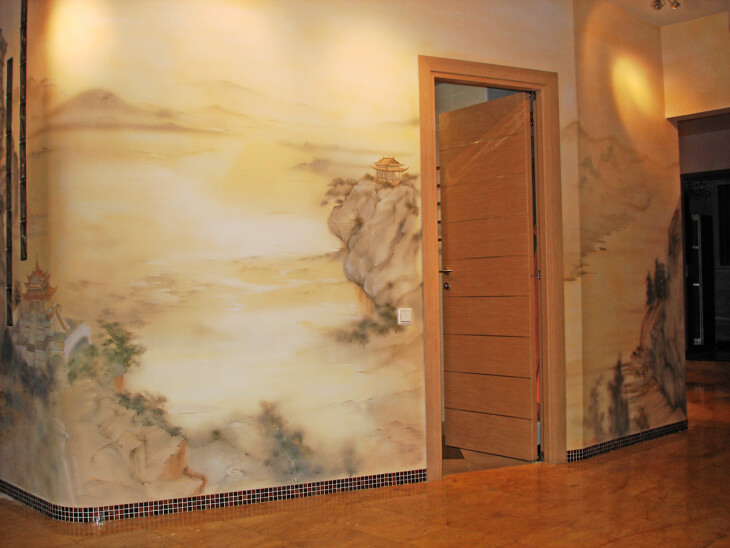Неважно кто будет производить работы – вы или мастер, поверхность для рисунка подготавливается именно вами. Необходимо добиться максимально ровной плоскости, после чего обработать грунтовочным слоем. Перед тем, как выбрать такой способ оформления интерьера нужно быть готовым к большим затратам и возможно длительному процессу нанесения картин.