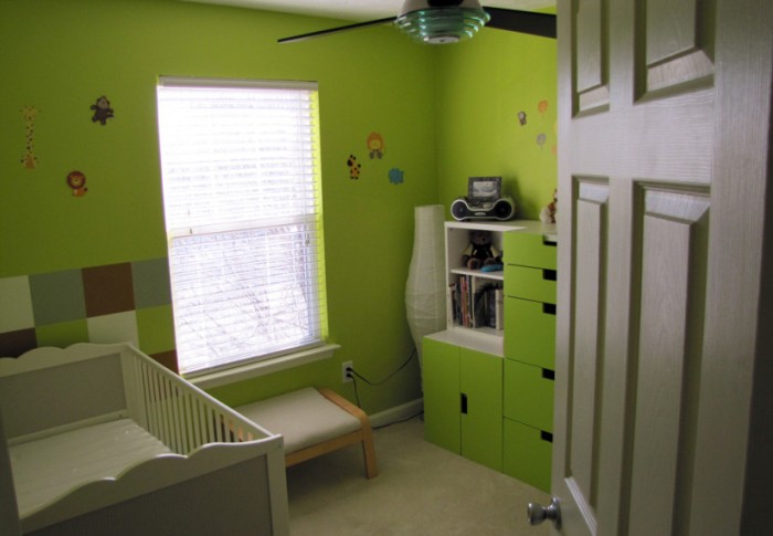 Дизайн интерьера детской комнаты с помощью салатовых обоев