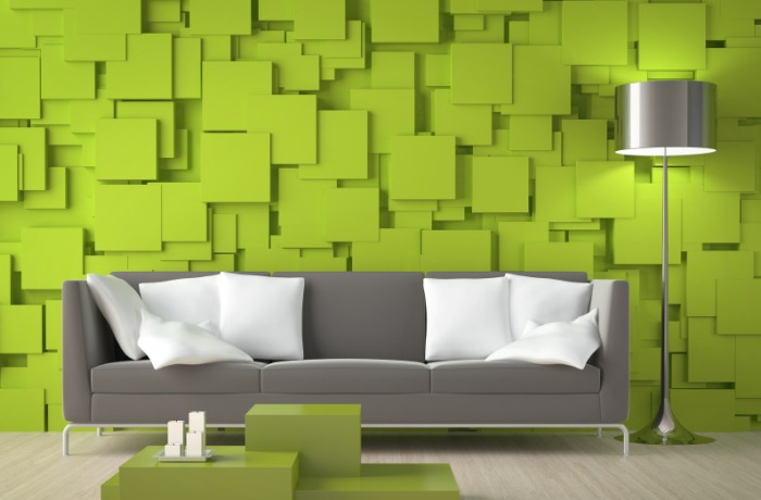 Как используются салатовые обои при построении интерьера