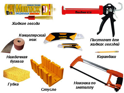 Инструменты для установки плинтусов.