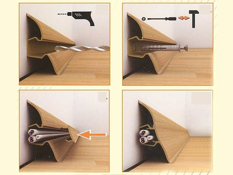 Установка плинтуса с кабель каналом: порядок монтажа